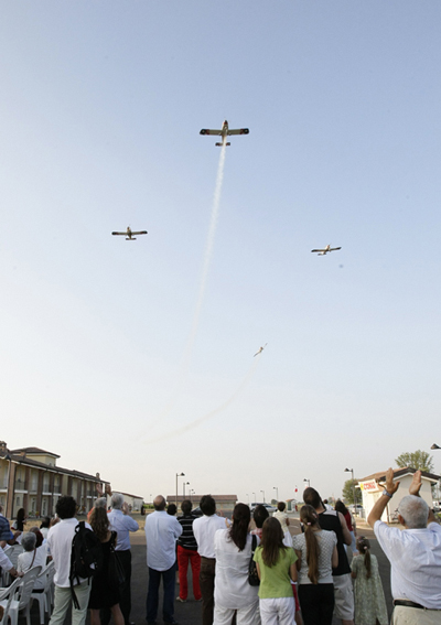 di Quattro Castella. Le evoluzioni aeree della pattuglia acrobatica hanno trovato